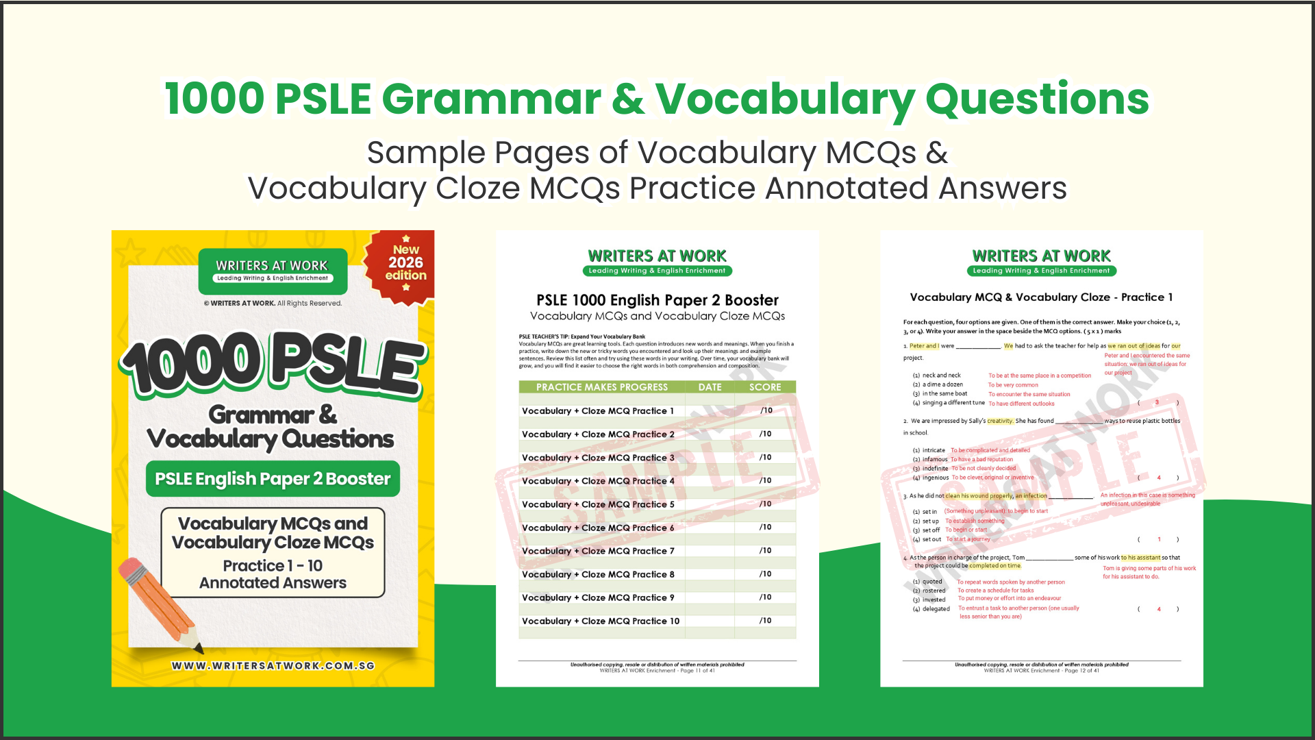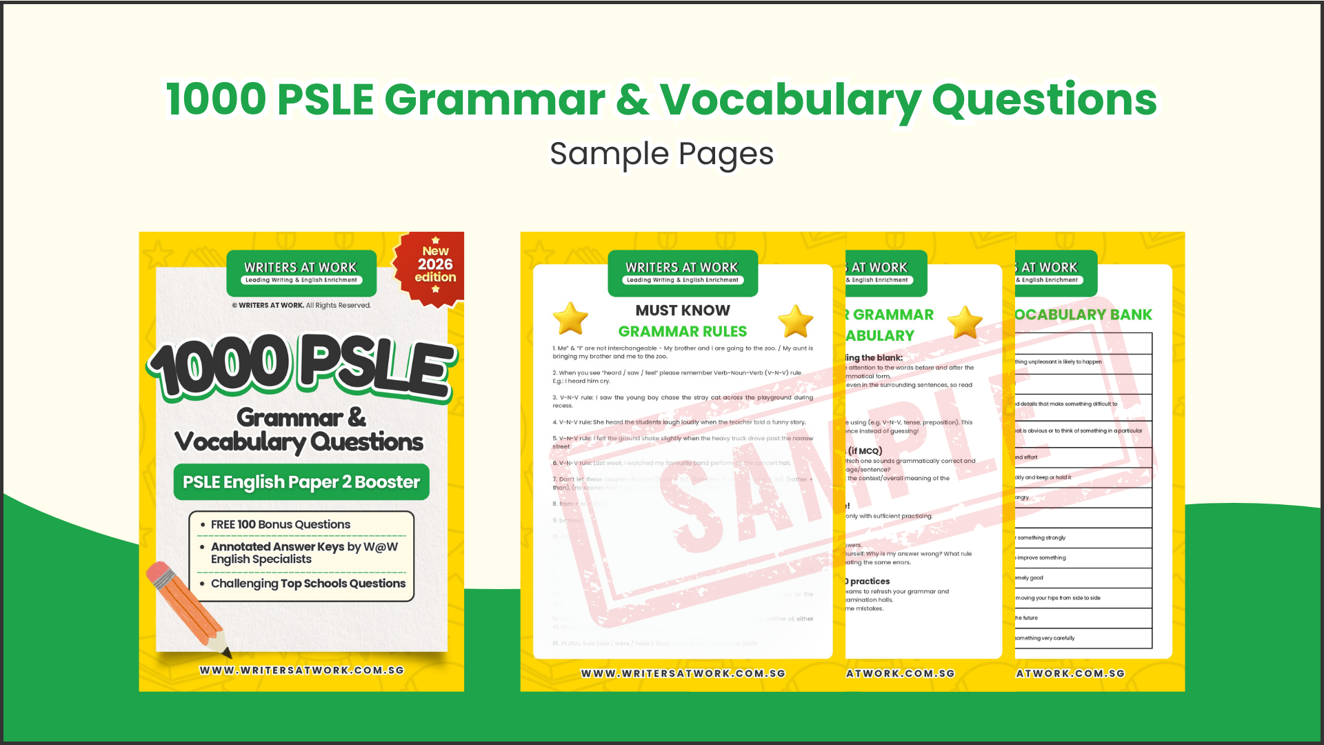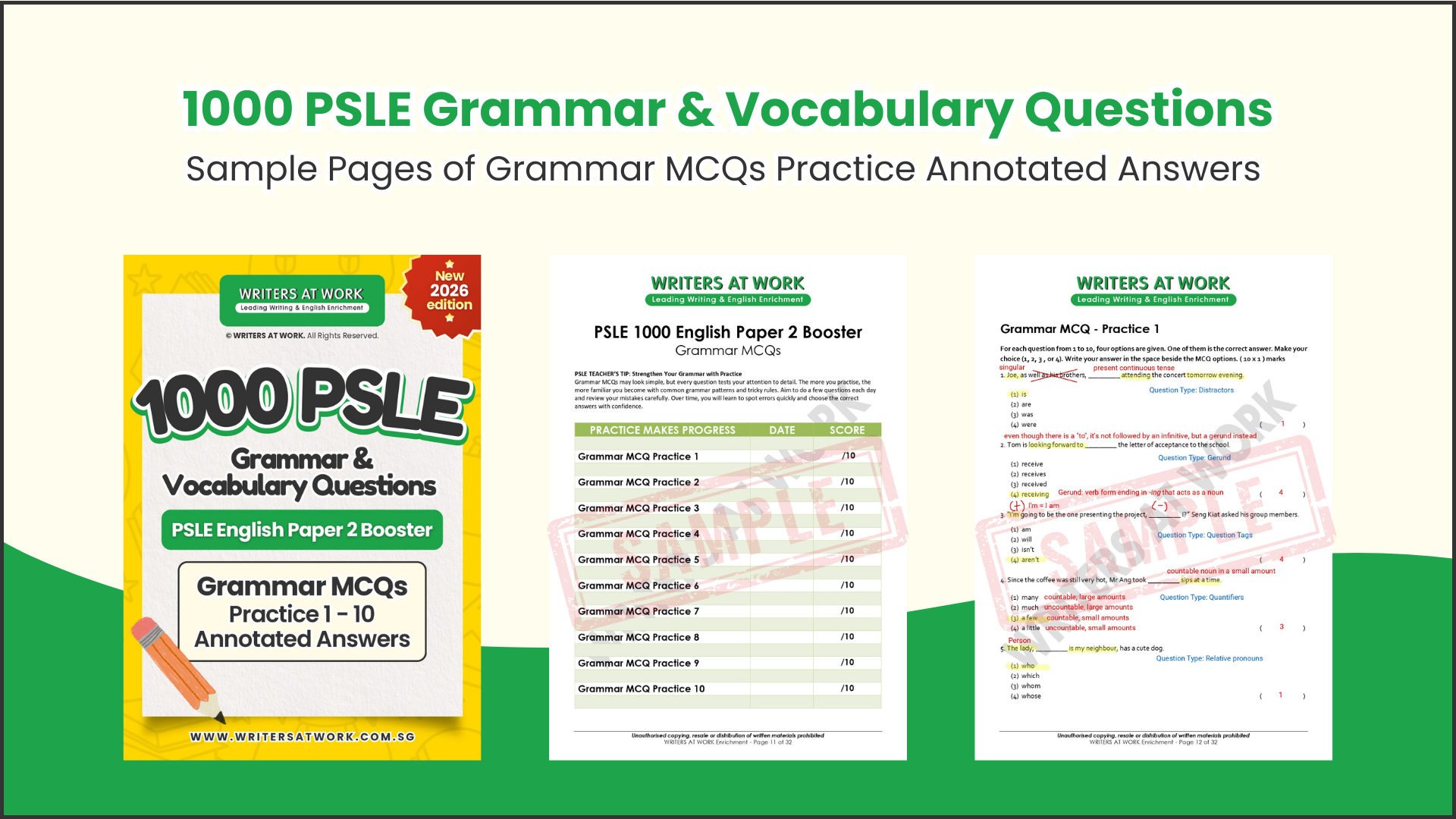 1,000 curated questions covering the grammar and vocabulary formats most commonly tested in PSLE and school examinations
